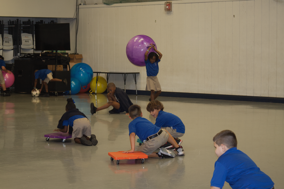 A compilation of images showcasing children engaging in various activities, including playing with scooters, exercise balls, and posing against a black background.